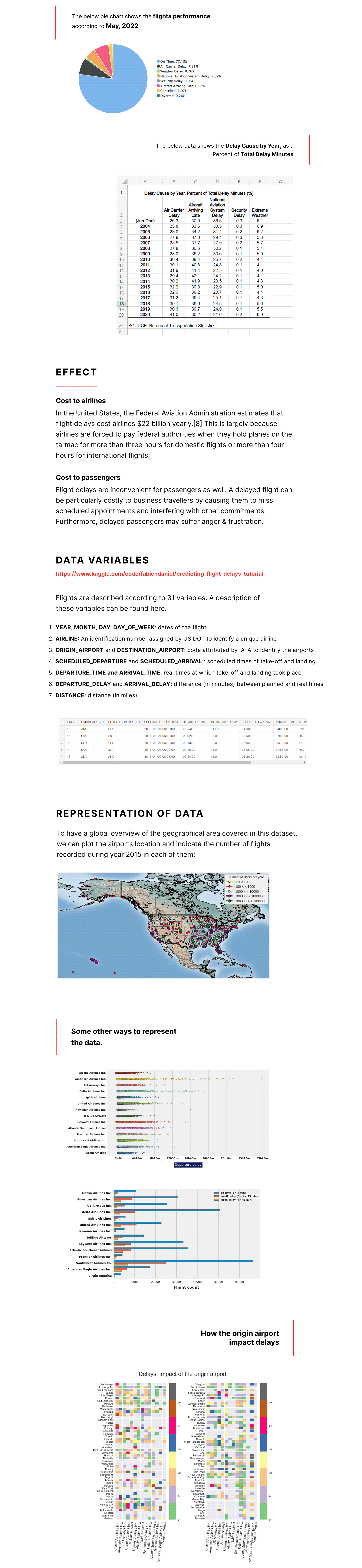 Interactive Tableau Delay Dashboard: A primary deliverable is an interactive dashboard that visualizes flight data to help users understand delay patterns. This includes geographical maps showing airport locations and flight volumes, as well as bar charts and scatter plots that analyse delay status by origin and destination.